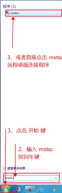 1、打卡 開始 菜單,并輸入“mstsc”按回車鍵。如圖